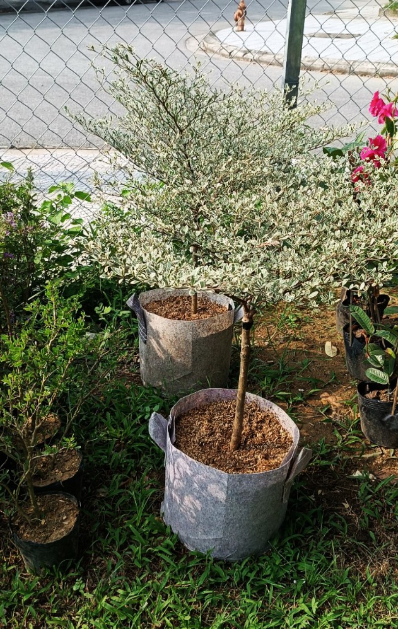 – Đối với cây trồng chậu có chiều cao dưới 2m: Chọn chậu đẹp có đường kính lớn hơn bầu đất của cây khoảng 5cm, sau khi chuẩn bị đất trồng phù hợp (trộn phân lót, xơ dừa…) thì tiến hành khoét lỗ, trút cây từ bầu nhựa ra bỏ vào chậu, lấp đất cố định cho cây thẳng đứng rồi tưới nhẹ ẩm đất và bắt đầu quá trình chăm sóc.