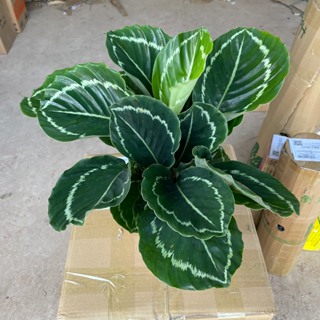 * Lá: Trên các cuống lá ngắn nhưng dai chắc là những chiếc lá có hình bầu dục xinh như lá dong, thon dần về phía đầu. Viền lá có dạng sóng gợn đều; lá màu xanh lục, nổi bật trên mặt lá xanh lục là những đốm bạc được sắp xếp có quy luật tạo thành đường viền hình của một chiếc lá bạc con.
