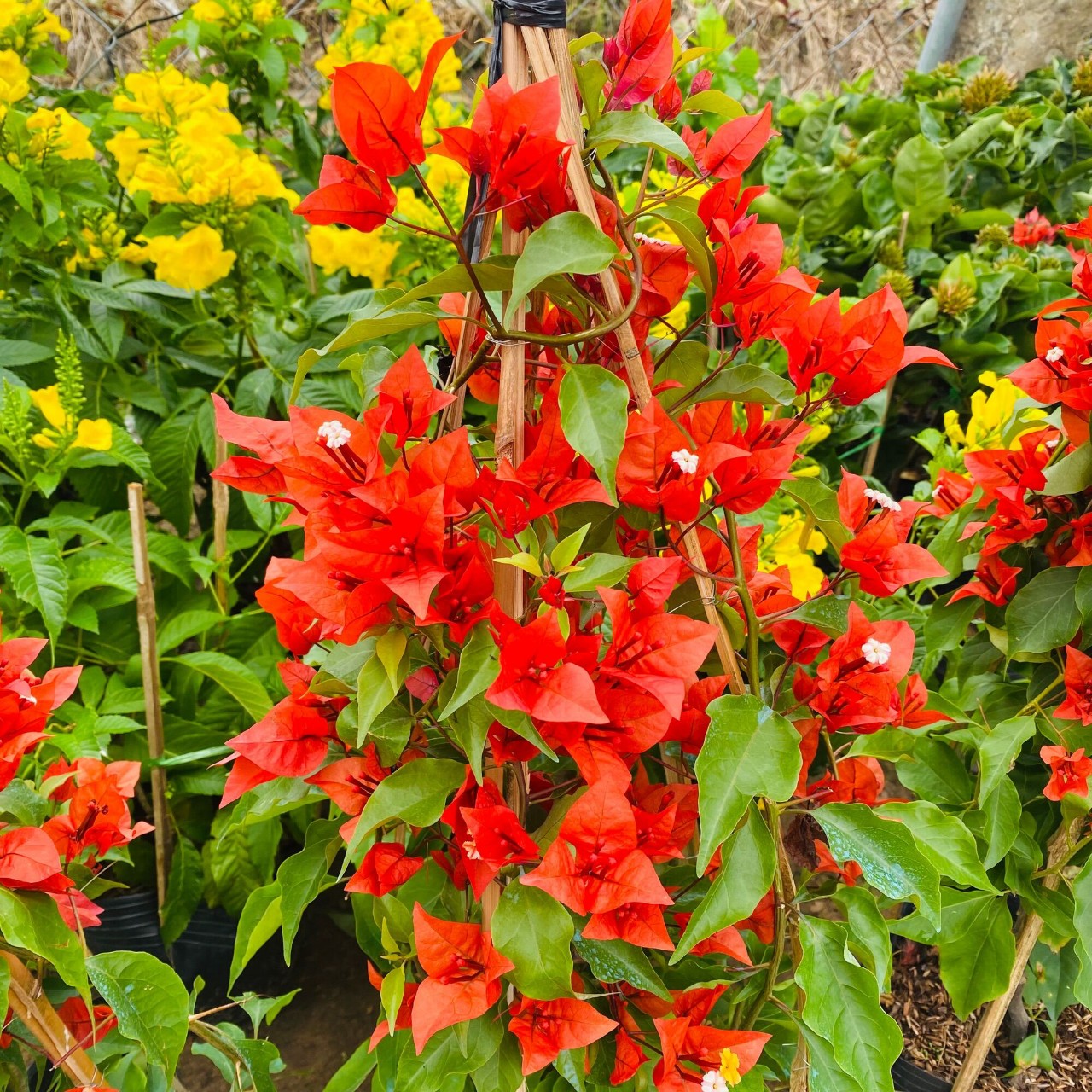 Cây hoa giấy màu đỏ lửa là giống hoa giấy mới, được lai tạo vài năm gần đây. Với sắc màu đỏ tươi vô cùng đẹp, lại sống bền, siêng ra hoa và dễ chăm sóc. Chúng hứa hẹn sẽ đem lại cho thị trường hoa giấy thêm sôi động.
