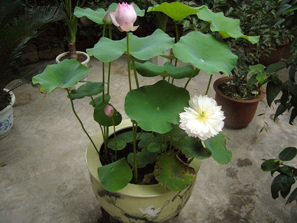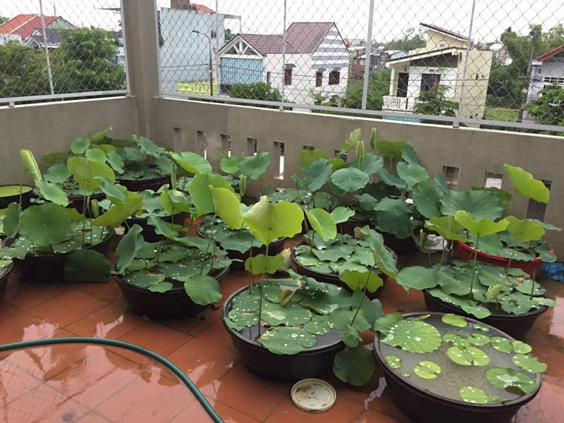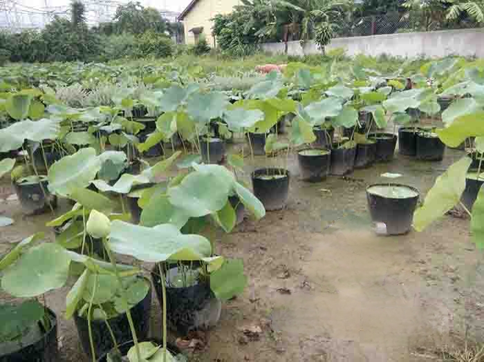 * Trồng trong chậu thì cho bùn nhuyễn đã xử lý vào chậu. Cấy rễ cây hoa sen vào bùn, sau đó cho nước sạch vào 1/2 chậu.