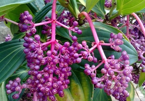 * Quả: Cây có quả mọng hình cầu, ban đầu quả có màu hồng nhạt rồi sang đỏ tươi và khi chín hẳn thì có màu tím. Quả nhìn rất đẹp nhưng không ăn được.