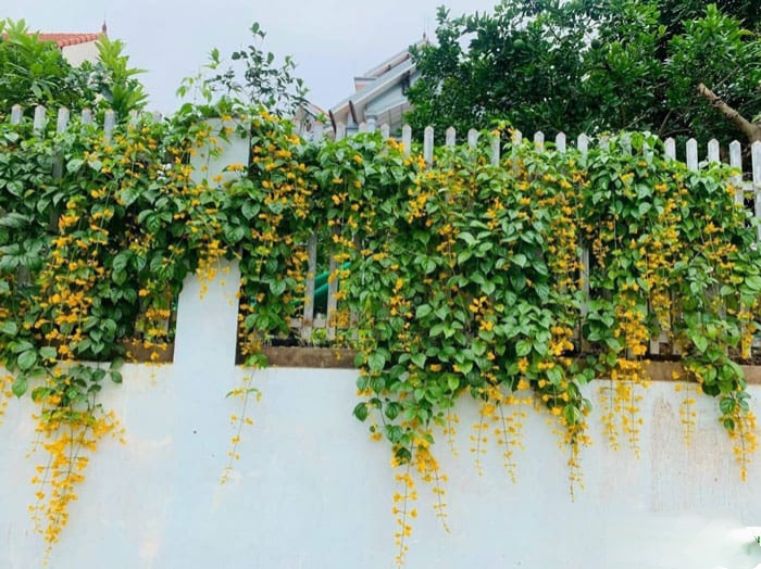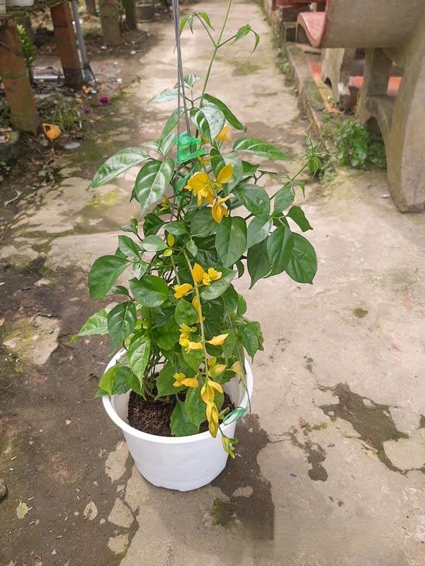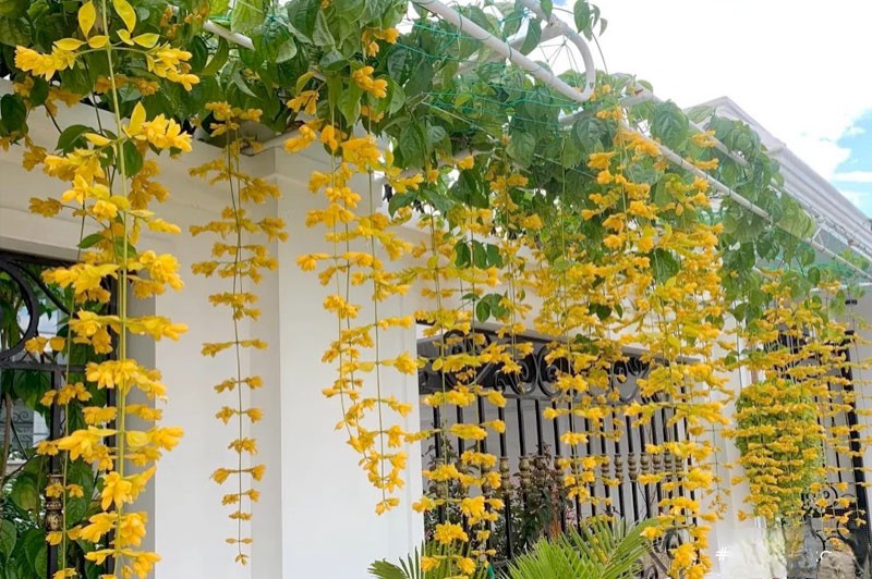 Cây Lan Hoàng Dương leo là loại cây được yêu thích hiện nay. Cây cho hoa vàng rủ rất đẹp, lại dễ chăm sóc. Trồng chậu treo trước nhà hoặc ban công cho hoa rủ xuống rất đẹp.