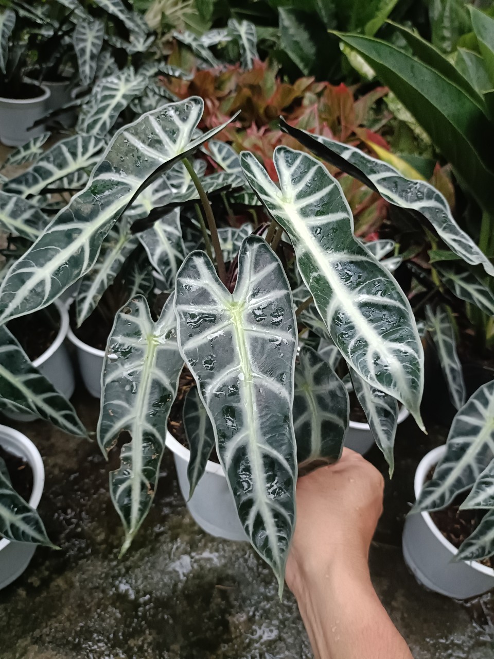Xuất xứ: Cây không phải tự nhiên có mà được lai tạo từ cây bố mẹ Alocasia Longiloba x Sanderiana ở Châu Á.