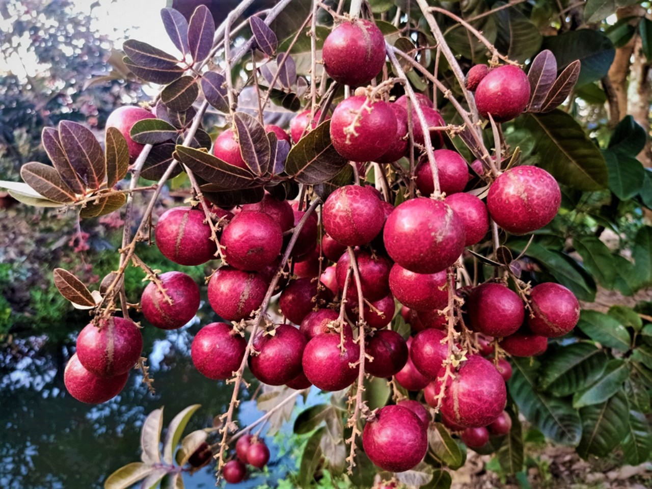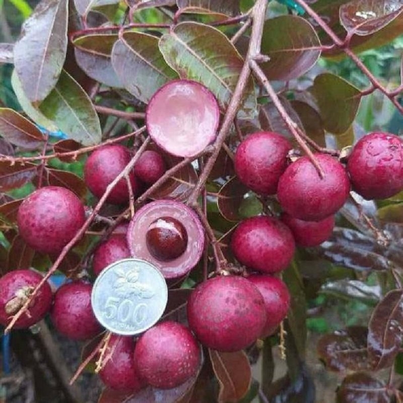 * Quả có màu tím phớt đỏ, vỏ mỏng, hạt nhỏ, có vị thanh hơn nhãn thường.