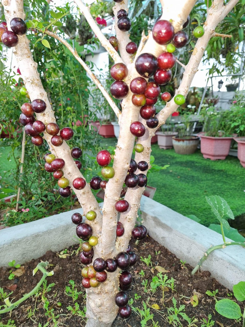* Khi ra hoa trái sẽ mọc chi chít trên thân gốc, các cành cây. Ban đậu quả non sẽ có màu xanh, sau chuyển sang hồng, khi chín mọng sẽ chuyển sang tím đen rất đẹp mắt.