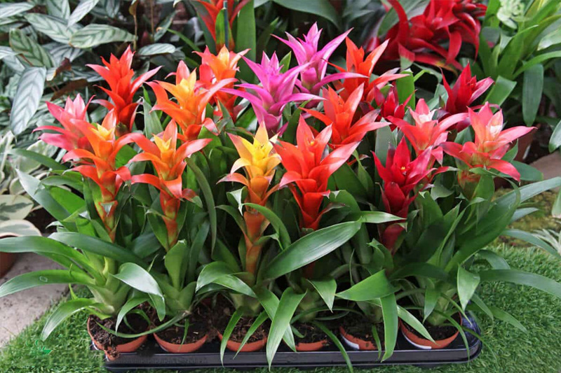 * Hoa của cây dứa cảnh chủ yếu có ba màu chủ đạo là, đỏ, vàng, hồng. Màu nào cũng rực rỡ, đẹp mắt.