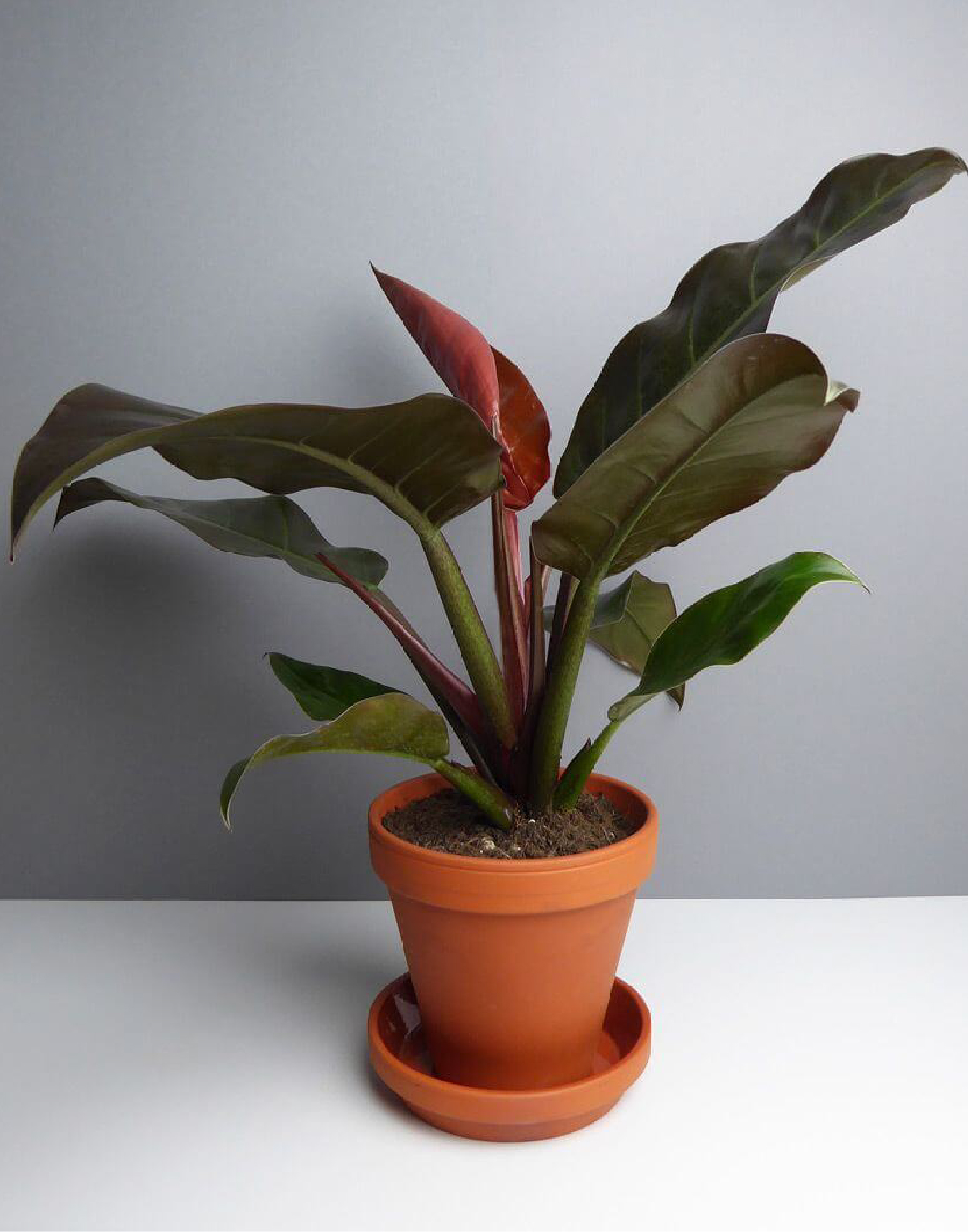 - Cây có tên khoa học là Philodendron Imperial Red. Cây thuộc họ Araceae (Ráy).