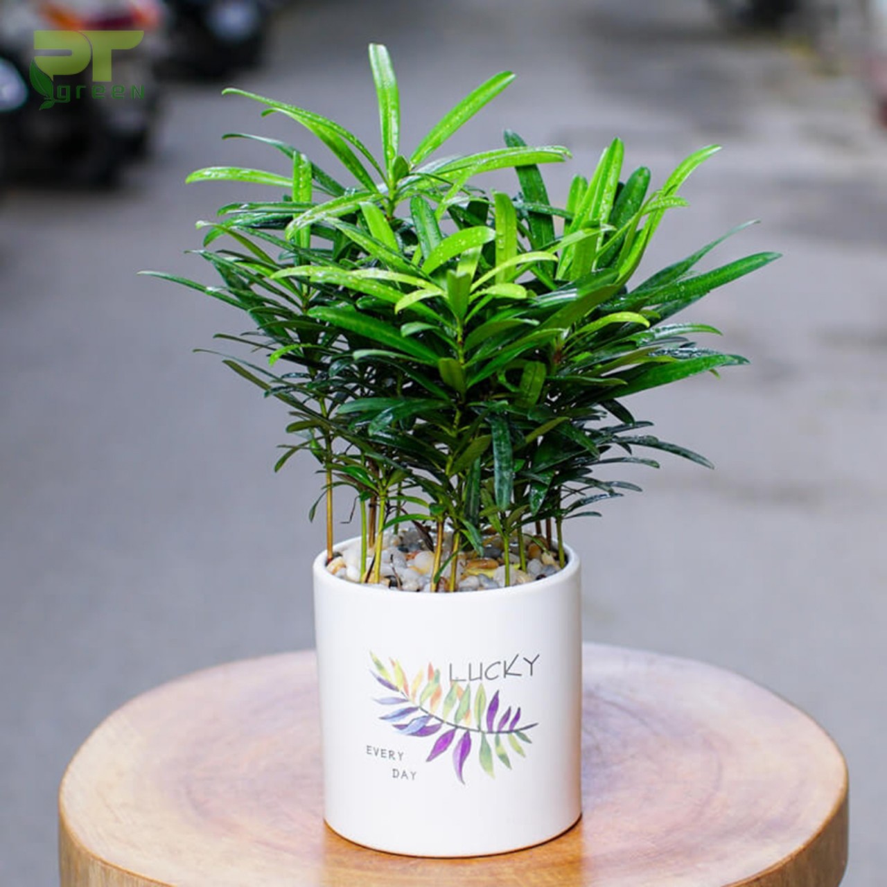 Cây Đuôi Công xanh lá tròn để bàn