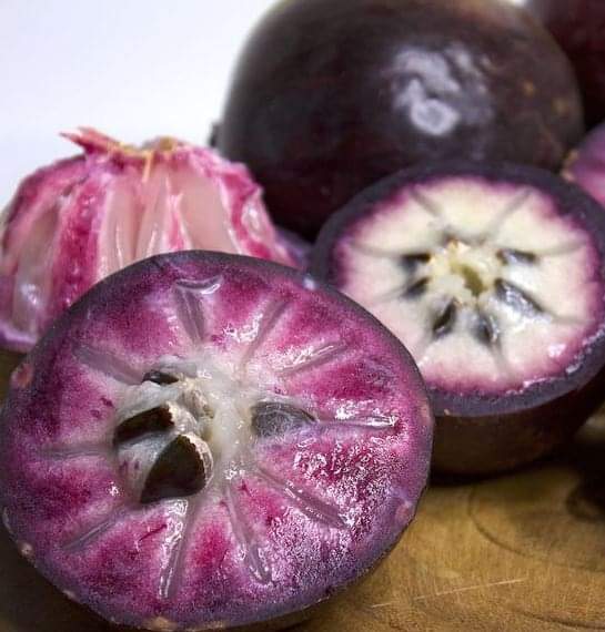 Về quả: có màu tím đậm hơn, khi chín không còn mũ trắng, vỏ mỏng, thịt dày, mùi vị ngọt thơm hơn rất nhiều.
